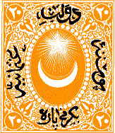 zentrale Motiv ist ein Halbmond mit Stern. Dier ersten beiden Auflagen